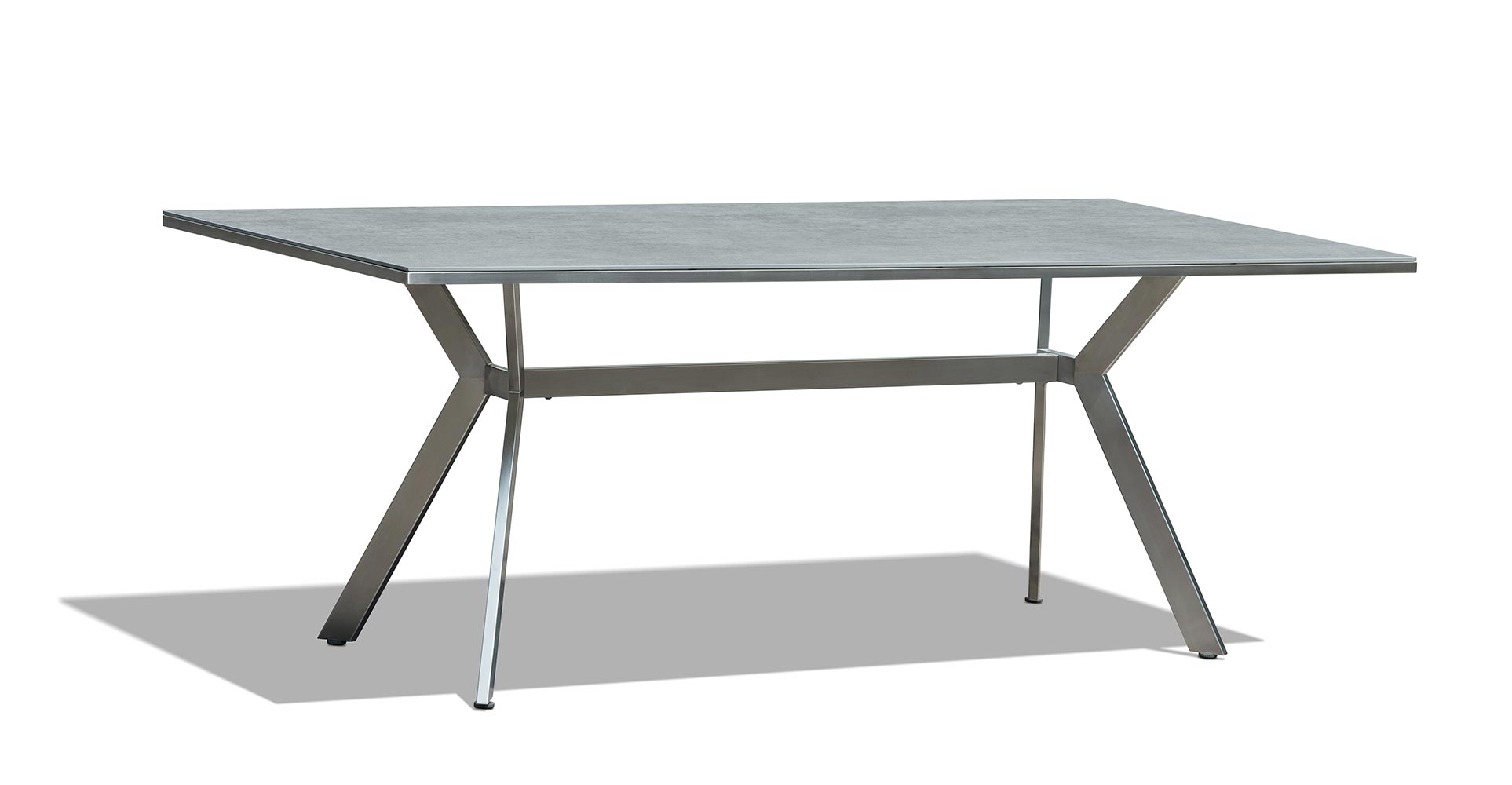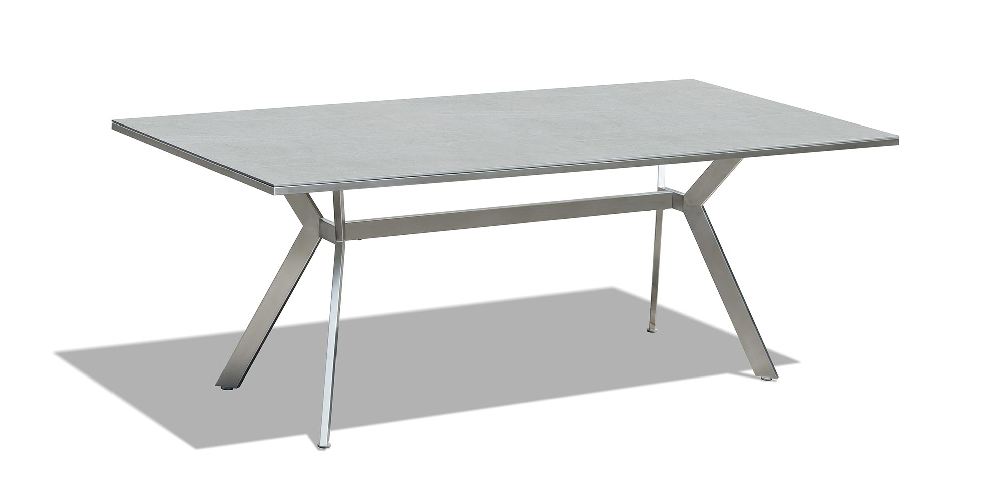 Gestell Edelstahl gebürstet, Keramikplatte 7mm in den Farben Urban Grey und Urban Taupe.